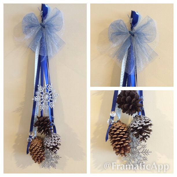 It’s time to make your home festive for January. You had the wreath up in December but you need something to take its place. This pine cone craft will bring a winter feel to your home and won’t break the bank to make either. Most of the supplies I was able to get on a discount due to being part of Christmas clearance. It will take about 15-20 mins to make. May be quicker, but I am a perfectionist and it took me longer to get the right length for each ornament hanging. You can use a variety of different ribbons, strings, burlap, or tulle. The world is your oyster so design it to however you see fit.
