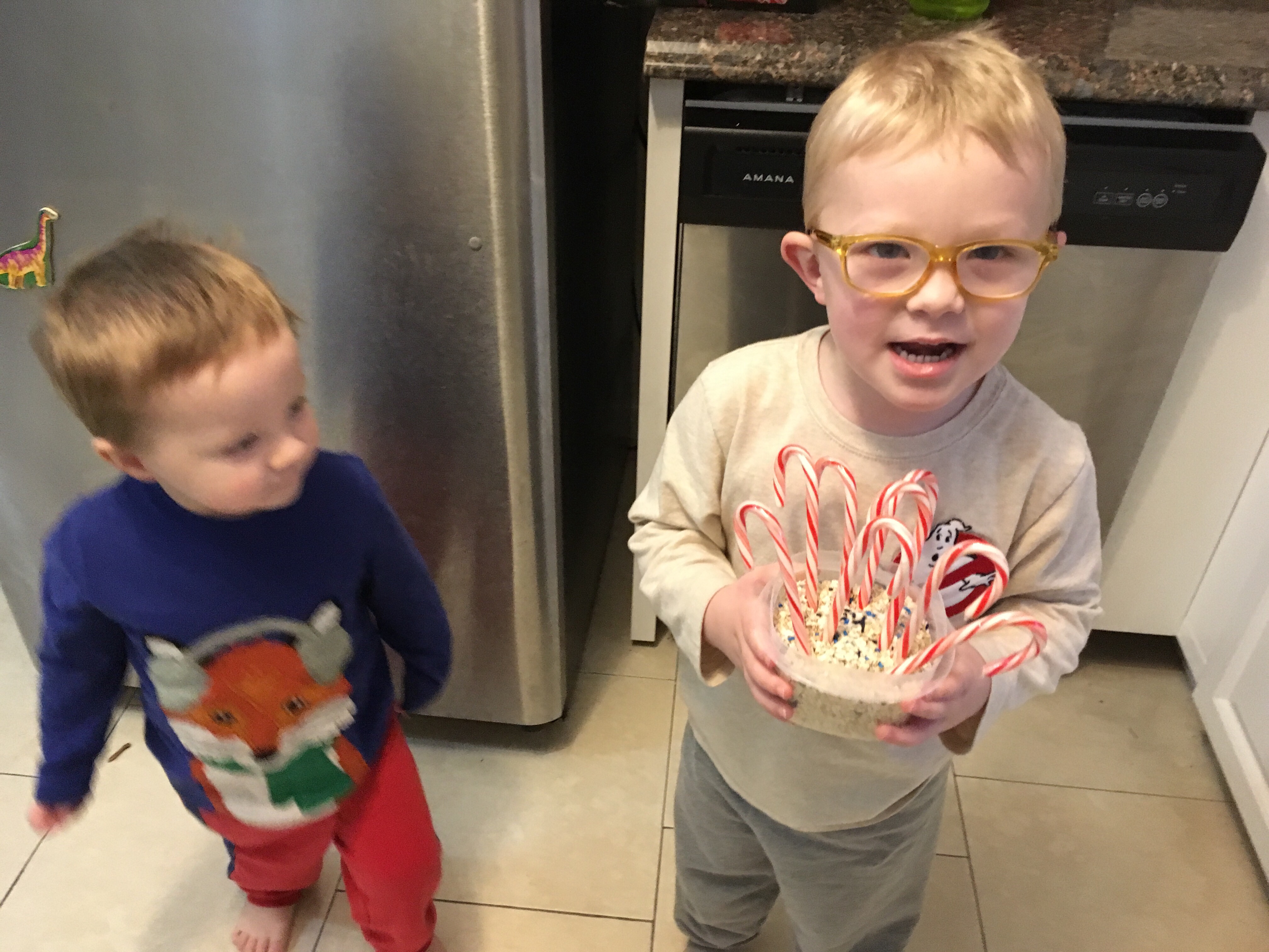 Also, if you are working ideas for Elf On the Shelf. Here’s how Bob taught the boys how to “grow” candy canes.