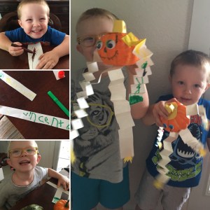 My boys love to be artsy. Since they are only 4 and 2 it makes it easy to keep them entertained on a budget. Construction paper and a few items from Dollar Tree goes a long way. Here’s a few ideas to be able to keep your kiddos busy this fall, add some festive decor to your house and keep their creative minds working.